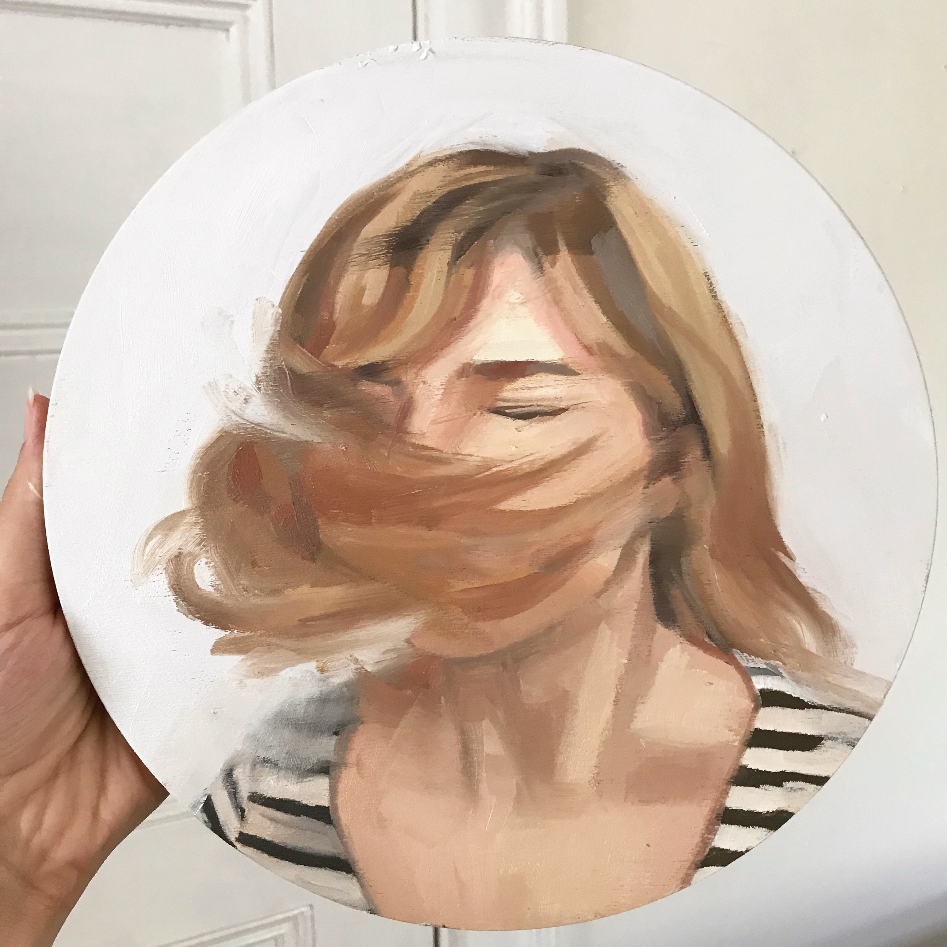 This 10in original oil painting is done on a cradled wood panel approx. 7/8in deep. The self portrait was completed in 2019. Signed on the back.