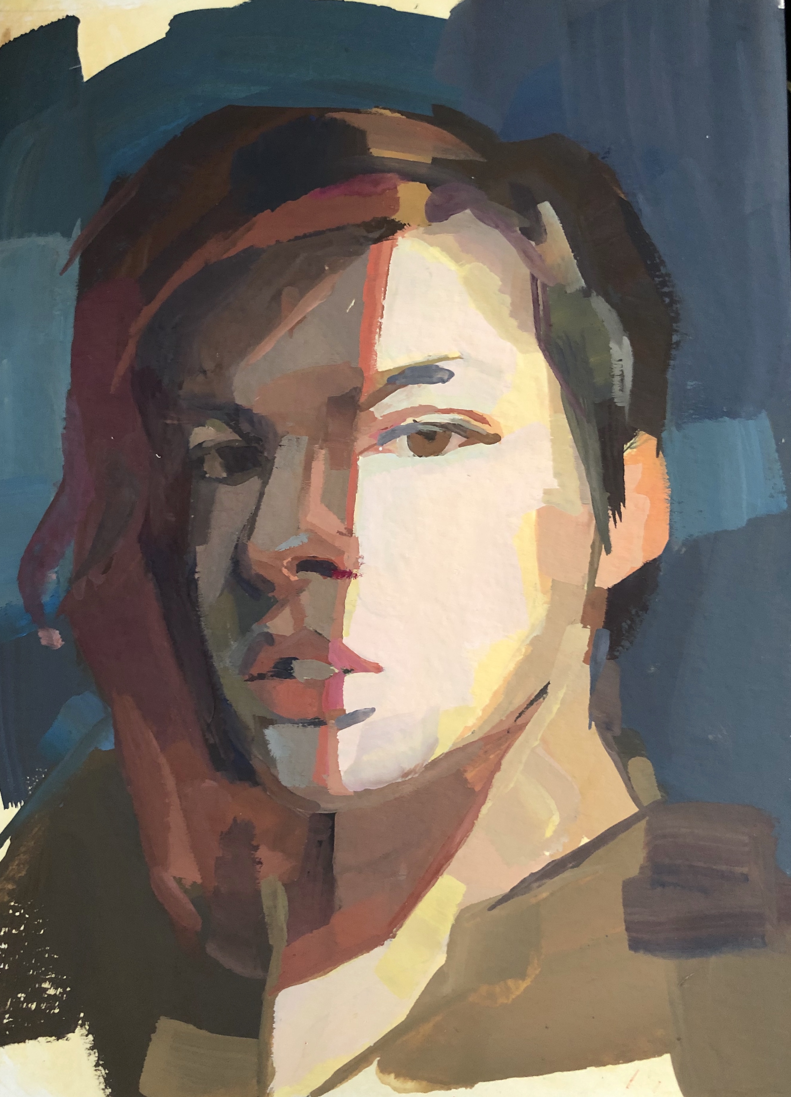 This gouache self portrait was done on livestream and you can see the process of it being made on my twitter or instagram. It is on watercolor paper and is approximately 5x7in.